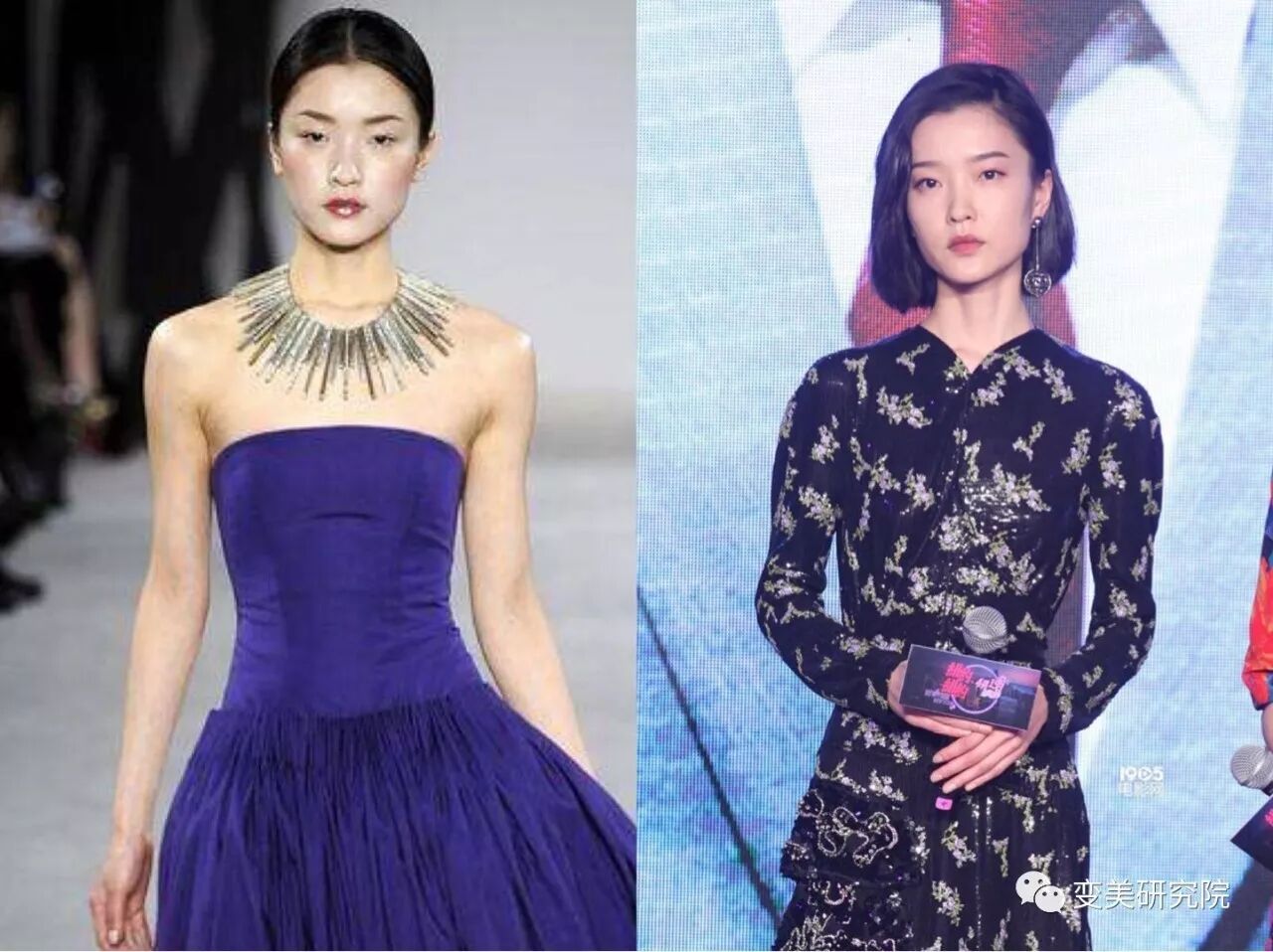 这个就造成了她的脸有种整个“向后退缩”的趋势,高贵感少了很多。