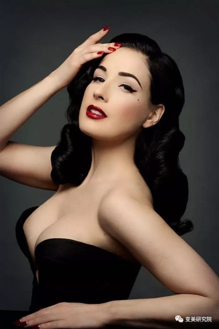 黑发加上红唇最适合复古造型,浓烈的色彩也非常适合线条感明显的脸,她黑发红唇的时候远比浅色头发红色眼影的温柔系路线来的记忆深刻。这点原为金发的Dita比她贯彻的更彻底。