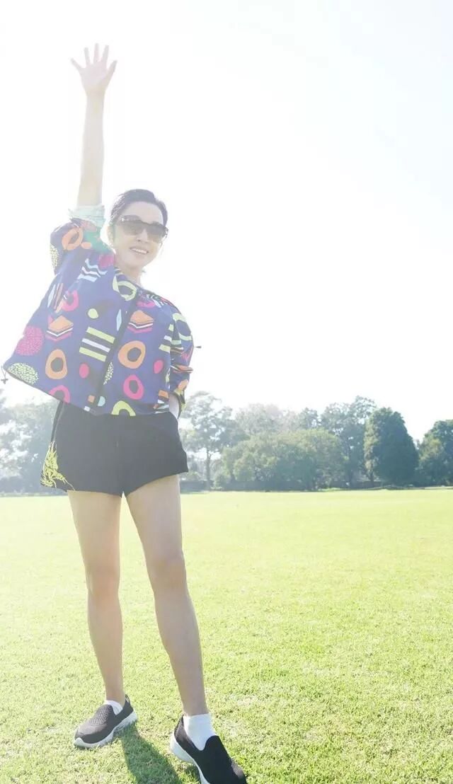 刘晓庆其实还是比较懂得怎样享受生活,这个时候整个视野看起来都是比较开阔的,地上都是绿色的小草,看起来也是非常的养眼,刘晓庆上半身穿的这件衣服还是比较花哨的,下面穿的就是一条黑色的超短裤,下面的那一双腿看的只会越来越真实!
