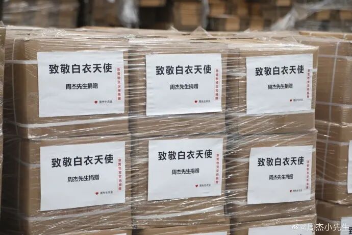 这次疫情,周杰给医护人员捐了2万斤自产大米。