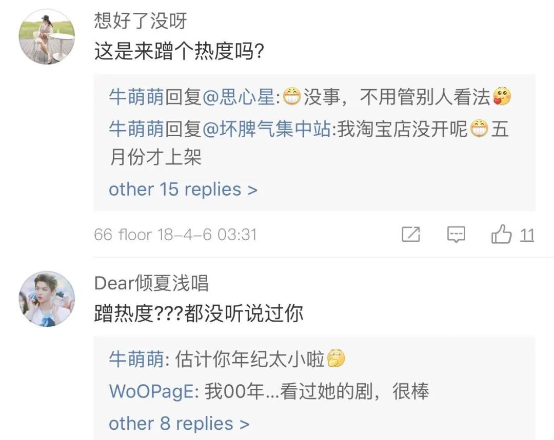 牛萌萌自己的说法则是,当时没有规划好,索性就不演戏了,开淘宝店卖衣服。