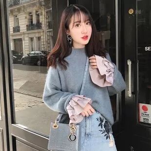 然后还可以这样搭配在毛衣里面,露出袖口是不是很美。