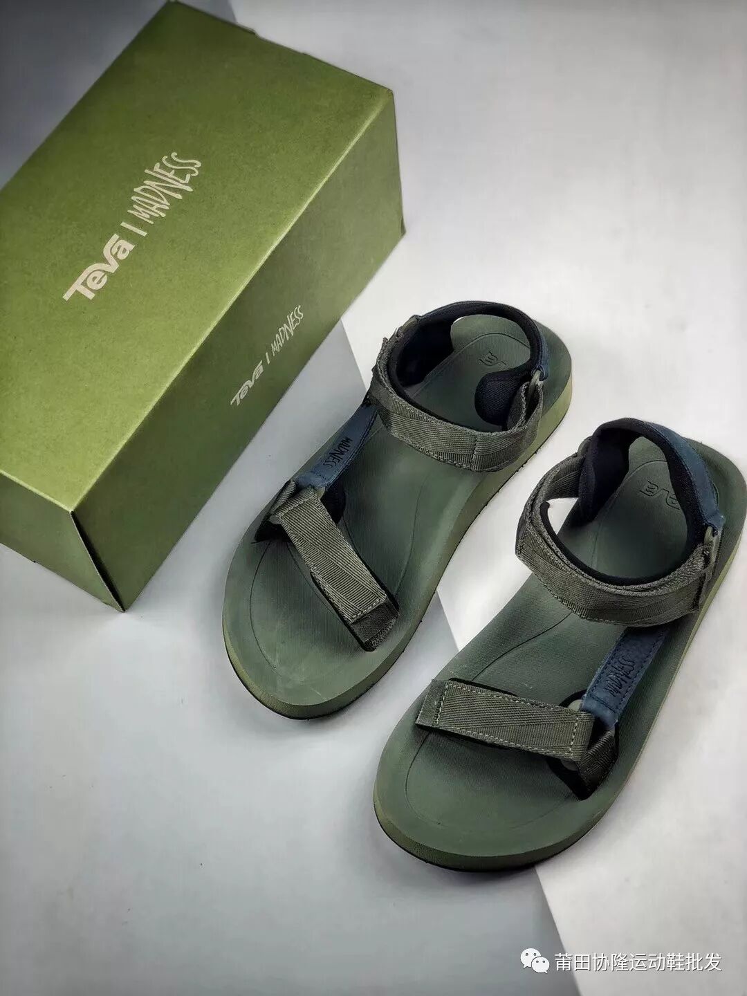 MADNESS一贯的复古与军事格调在这双凉鞋上再次得到充分体现,经典的TEVA鞋面三角搭扣简约油性,工装风格的编织绑带速干且耐用,并并拼入带褪色效果的蓝色皮革,上面压印着MADNESS签名式的LOGO,此外鞋床采用FLOAT LITE™轻型泡沫,并搭载TEVA引以为傲的缓震中底与强力抓地大底,适配户外与城市道路穿着需求