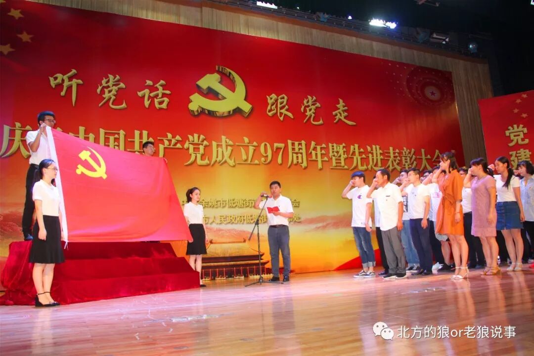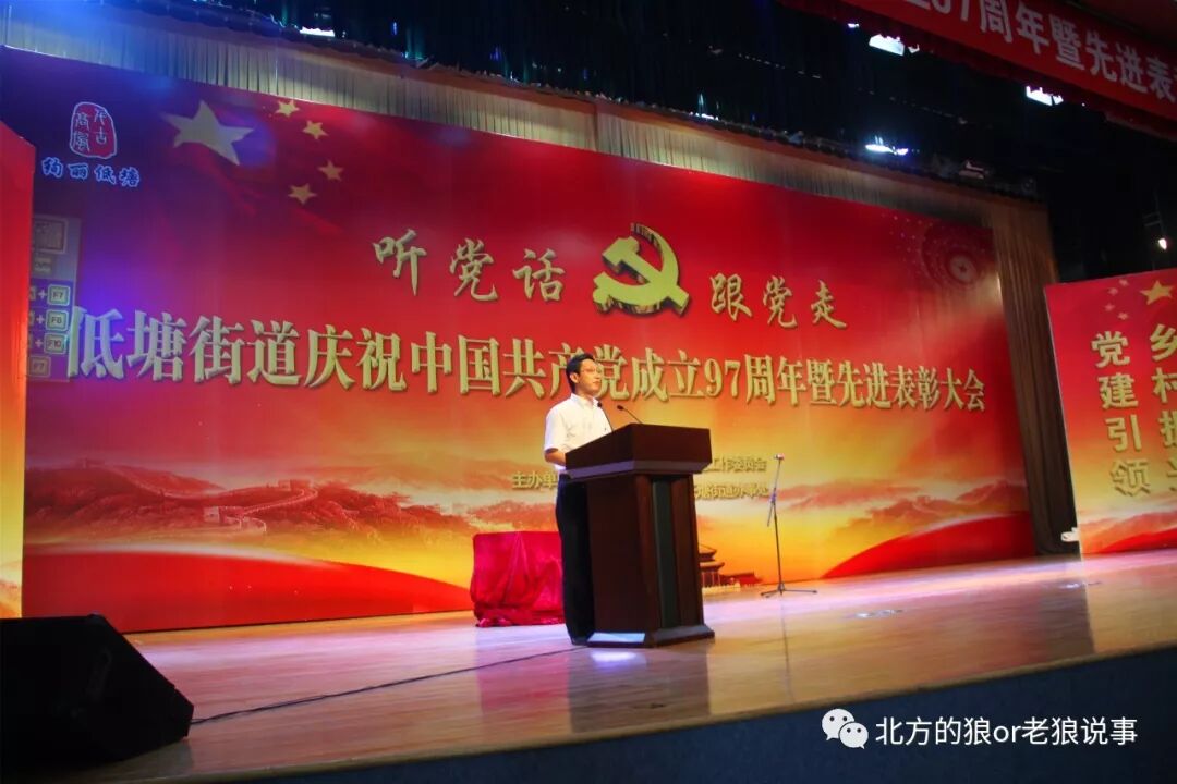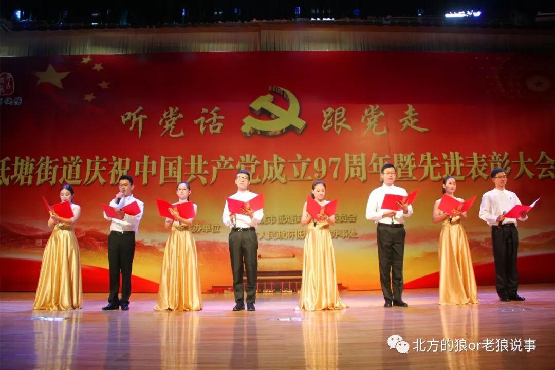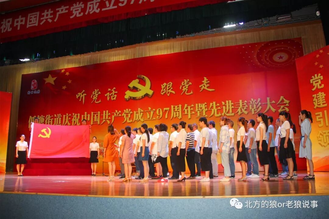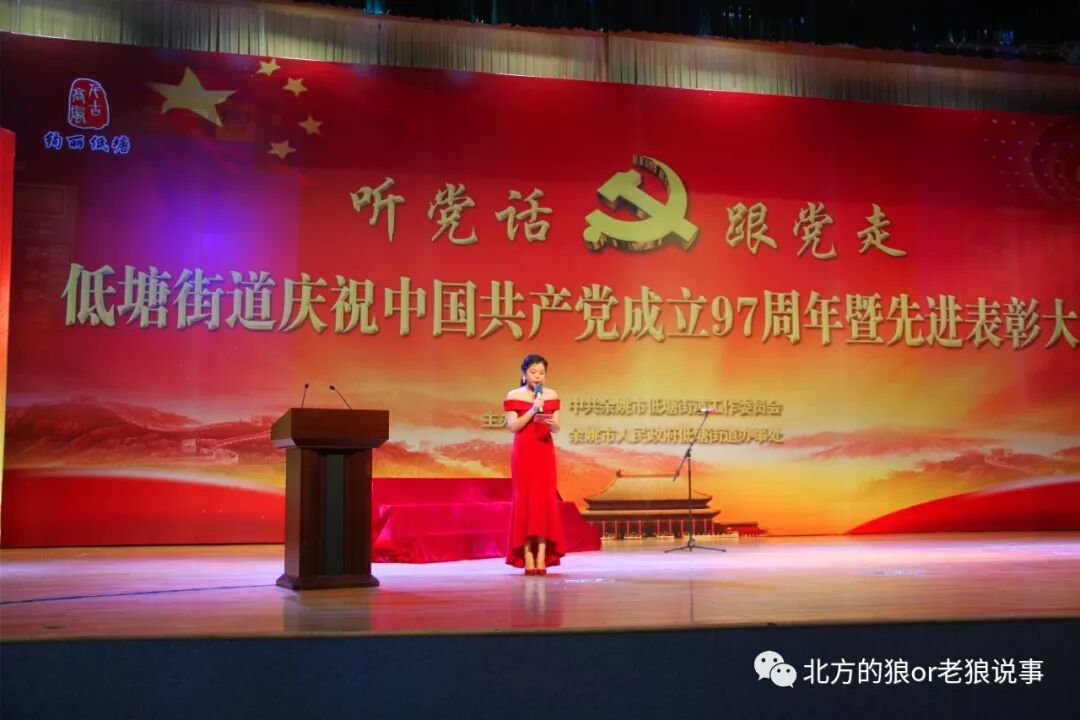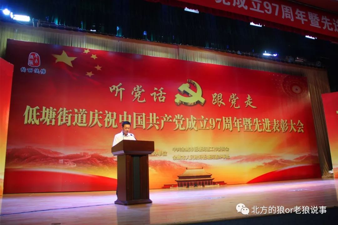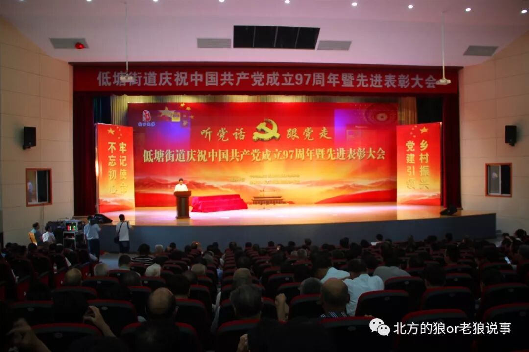 在庄严的国旗声中,低塘街道庆祝中国共产党成立97周年暨先进表彰大会开幕。