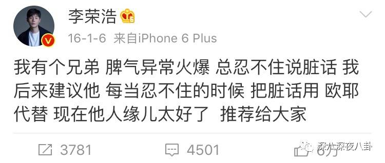 八过李好歹有点才华,这个事儿已经过去了,除非陆瑶在李荣浩杨丞琳公布婚讯时再叭叭叭发长文出来,老李头儿应该不会糊掉咯