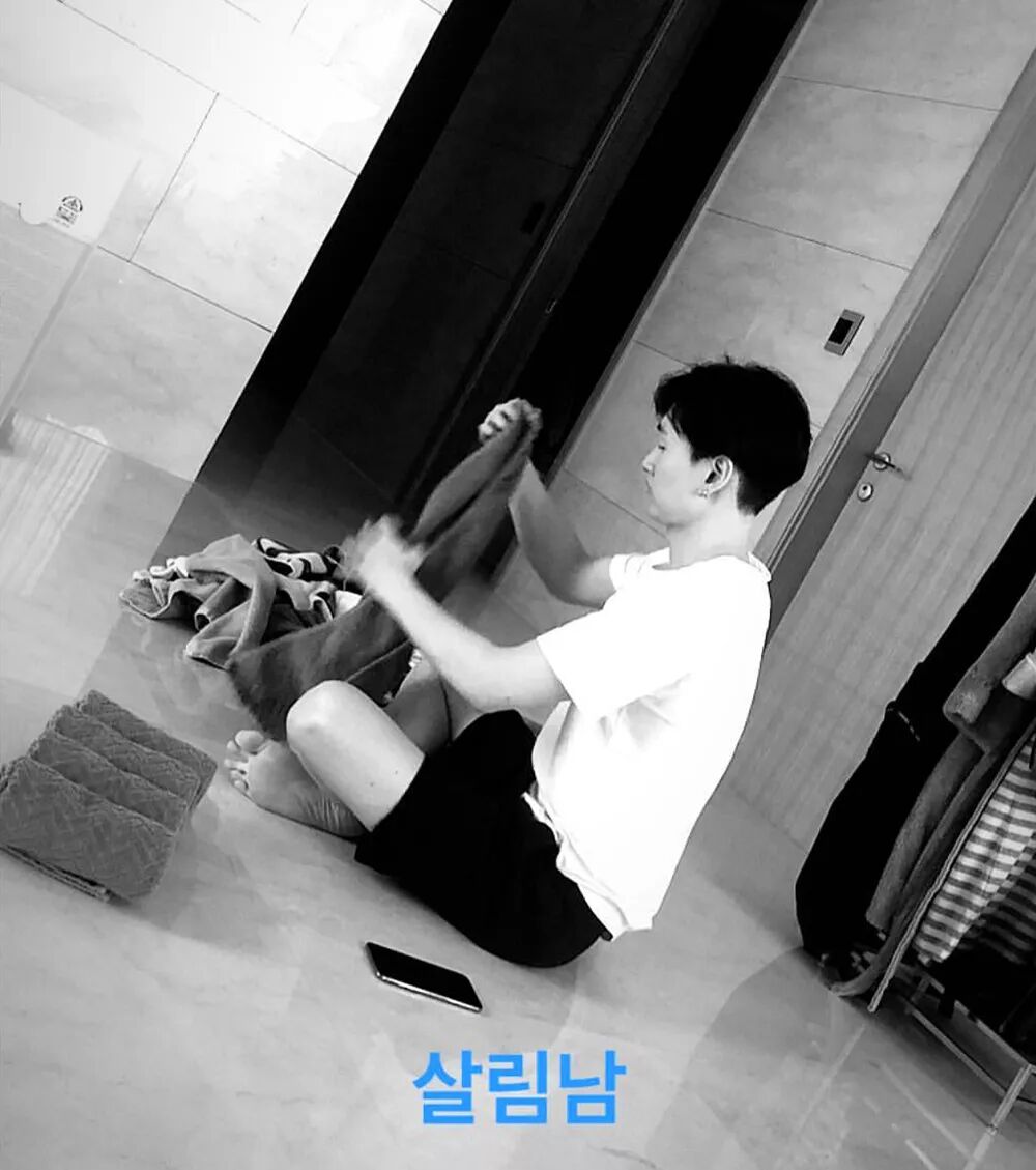 3月7日,李东海通过ins story分享了一则动态显示李赫宰坐在地上认真整理衣物的照片,并配文“居家男”。在Super Junior-D&E双人访谈中,李东海也夸赞了李赫宰在家洗衣服的时候很有魅力。看来盒盒做家务的时候确实魅力值爆表呢,想象无论是李赫宰在自己家叠衣服东海在旁边拍照还是李赫宰去东海家做客顺便帮忙收拾衣服都是非常温馨的场景。老少年的友谊真是太棒了,点赞!