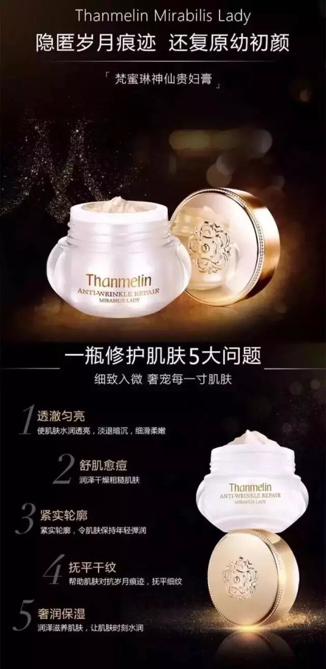 贵妇膏的效果经历了岁月的验证。将最好的配方源自于印尼,前期仅供上层人士使用;利用现代纳米技术提取纯植物原浆,调配精制而成的天然名品,另肌肤回归活力的高浓缩再生营养尚品。