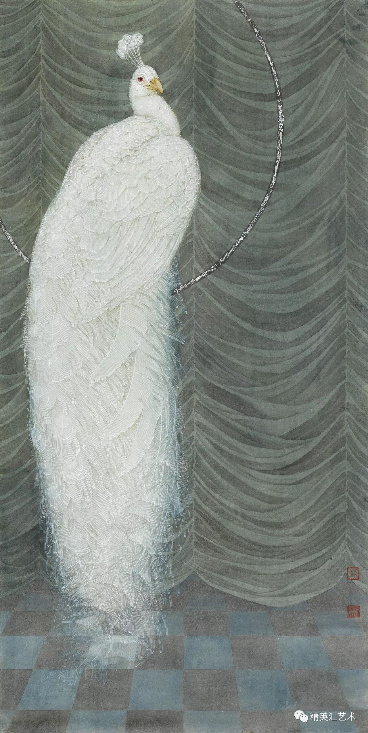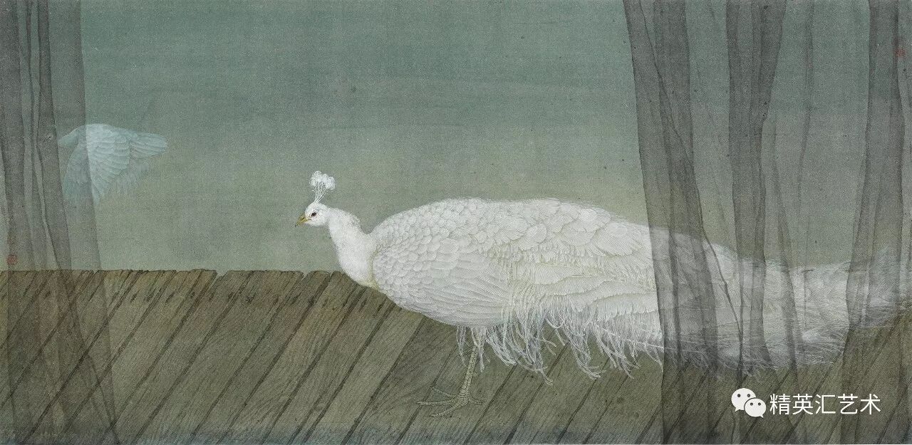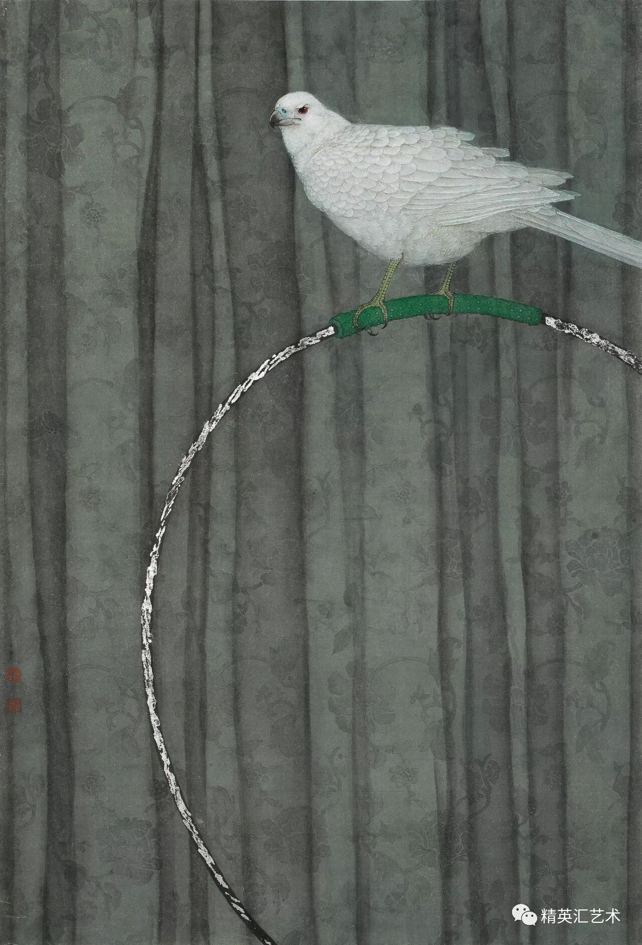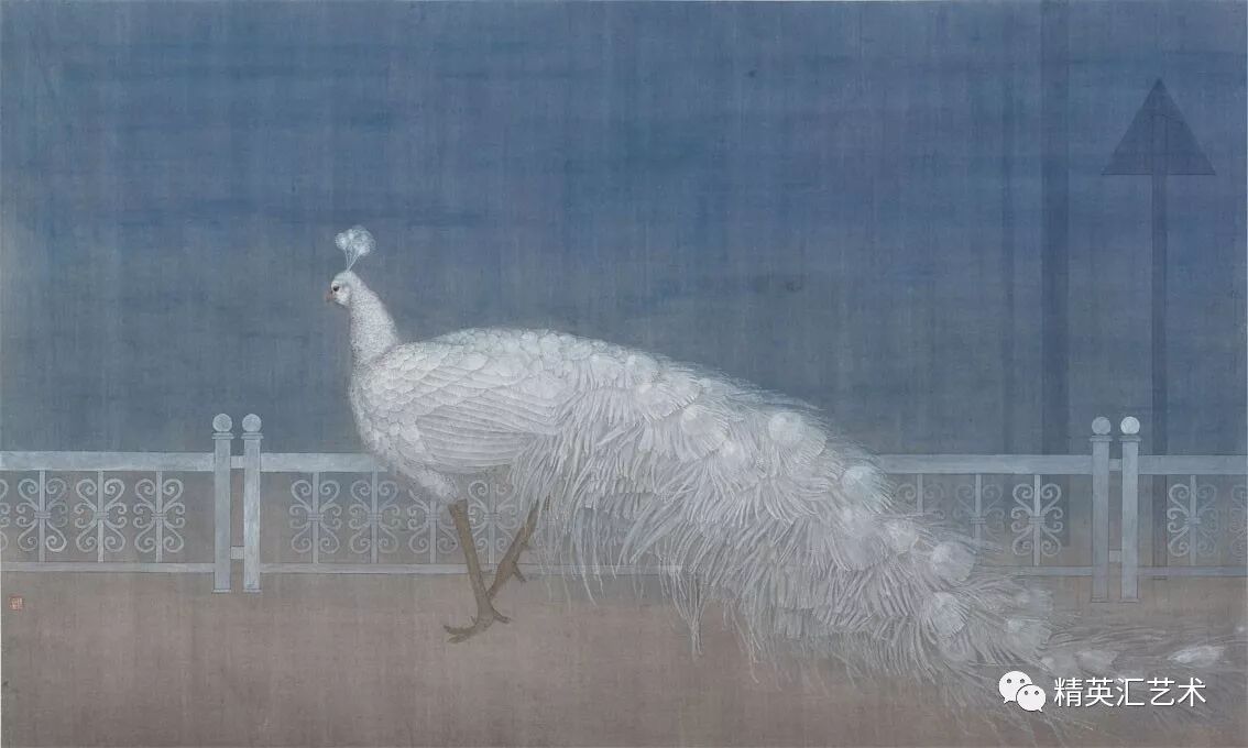 在画家笔下,那一只只禽雀白羽披雪,凛然自顾,它们代替画家仰视碧天际,俯瞰绿水滨,向往无穷又归返自我。无论是囿于高楼还是困于牢笼抑或伫于片石清流中,那一身傲骨却是永远磊落出尘的。
