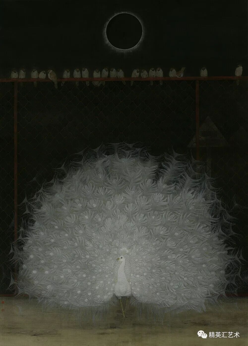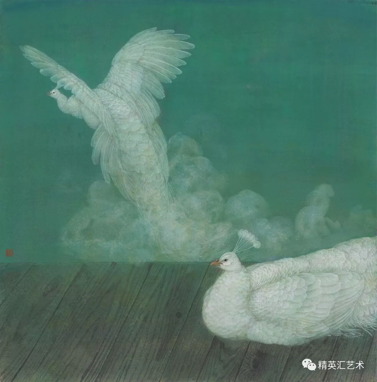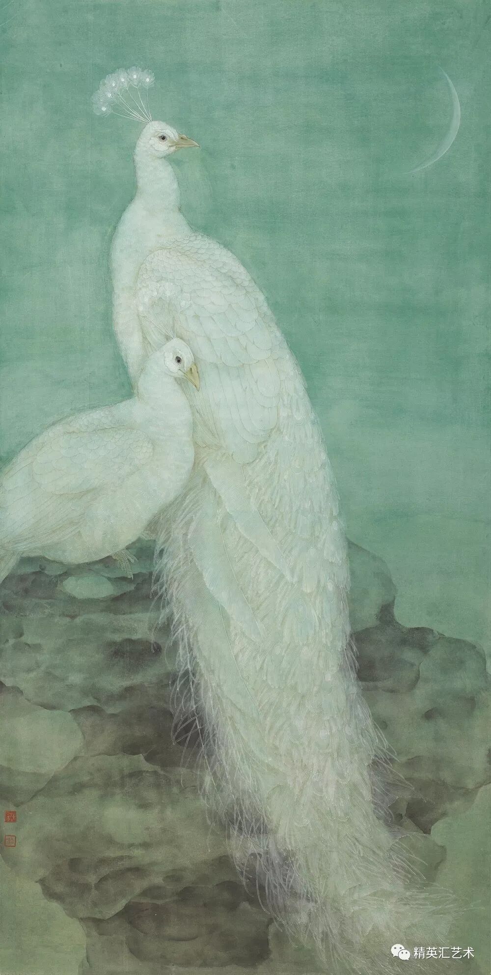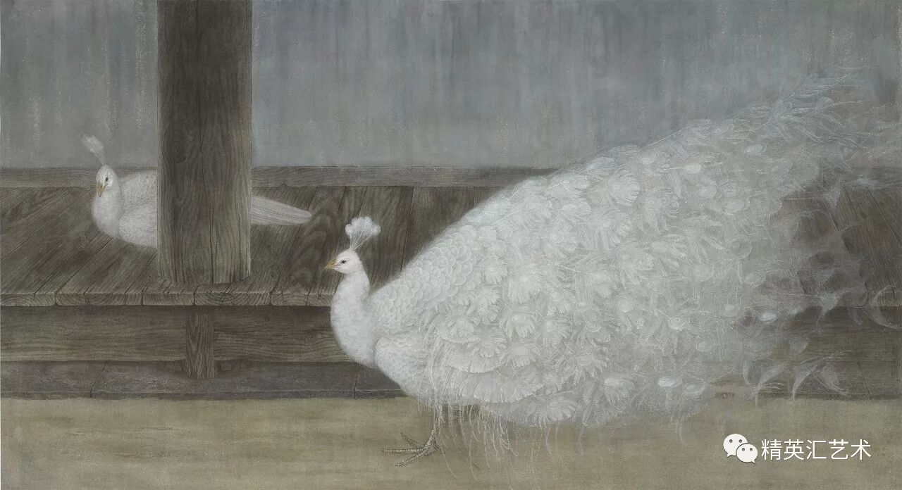 在画家笔下,那一只只禽雀白羽披雪,凛然自顾,它们代替画家仰视碧天际,俯瞰绿水滨,向往无穷又归返自我。无论是囿于高楼还是困于牢笼抑或伫于片石清流中,那一身傲骨却是永远磊落出尘的。