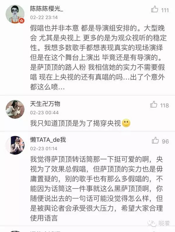 高清有高清的坏处,这一幕被细心的观众发现了,萨顶顶的微博被瞬间刷爆,她本人不得不出来回应:“别骂了,下次演得更精细些。”一个“演”字,不仅成功卖萌,也道出了实情。假唱,本就是业内规矩,你们这些网友激动个啥呢?大家都是演员,上场不过就演一场而已。