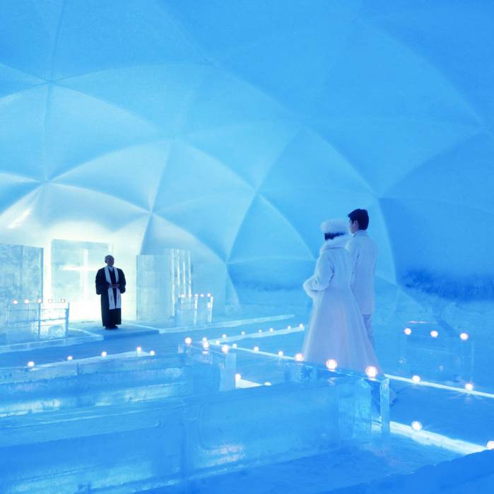 最超出预期的,是冰城里会有一个冰晶教堂,接受婚礼预定。别人都在春光明媚中结婚,你却在冬季的冰城中许下终身。
