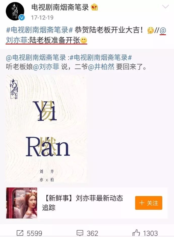 更像是和其正在拍摄的新剧《南烟斋笔录》剧组产生了矛盾。