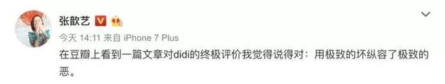 张歆艺则引用了豆瓣上一句对滴滴的评价: