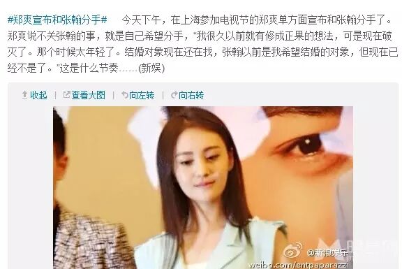 没多久,郑爽就自作主张单方面表示已经分手,感慨曾经想要修成正果的想法是因为太年轻,现在破灭了。