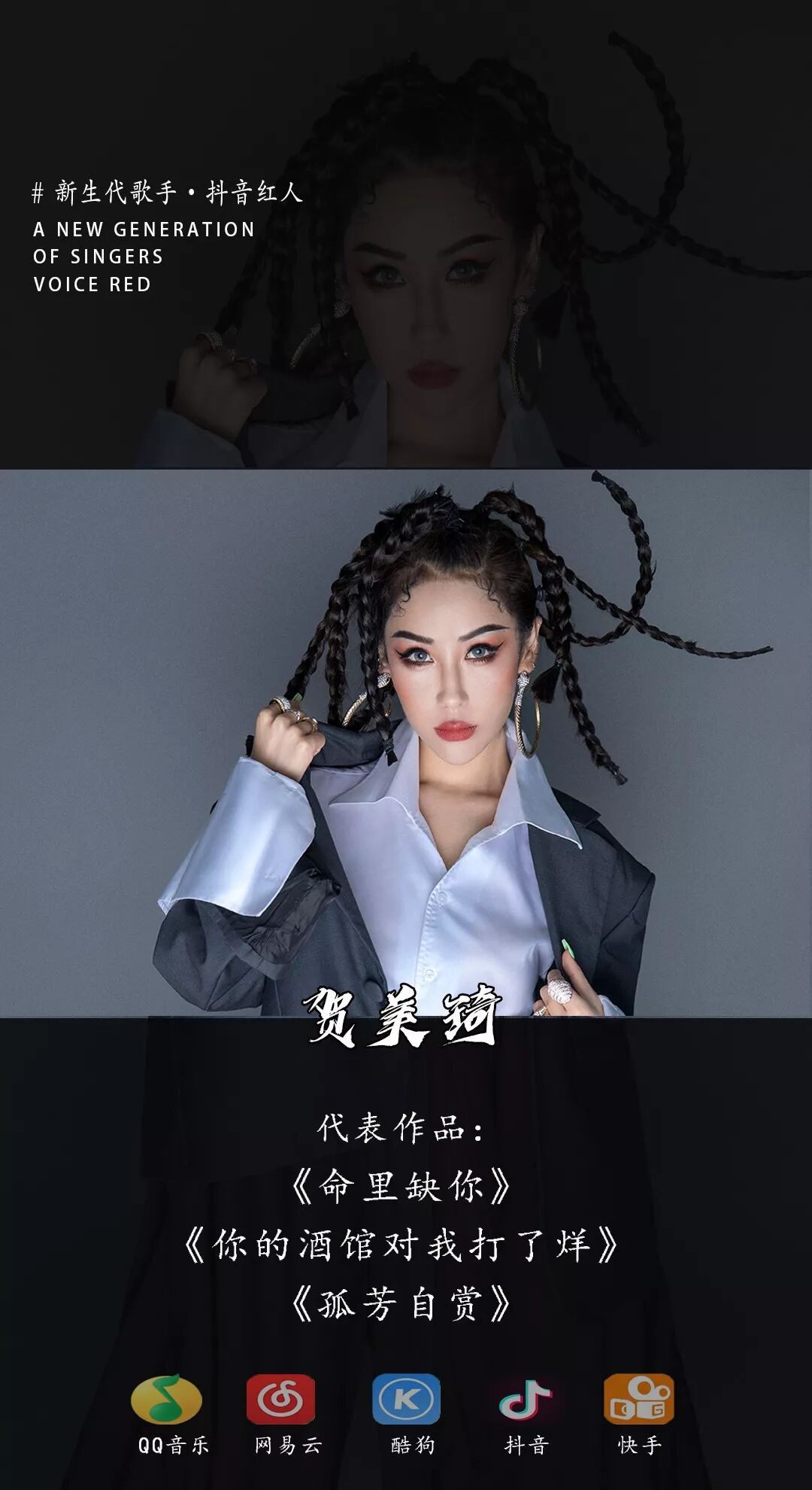 毕业于北京音乐学院的她,作词作曲监制为一体,为可谓是美貌与才华兼并,由贺美琦演唱的:《孤芳自赏》《你的酒馆对我打了烊》、《只是太爱你》近日网络上爆红,自上线以来在网络上的热度持续上升。
