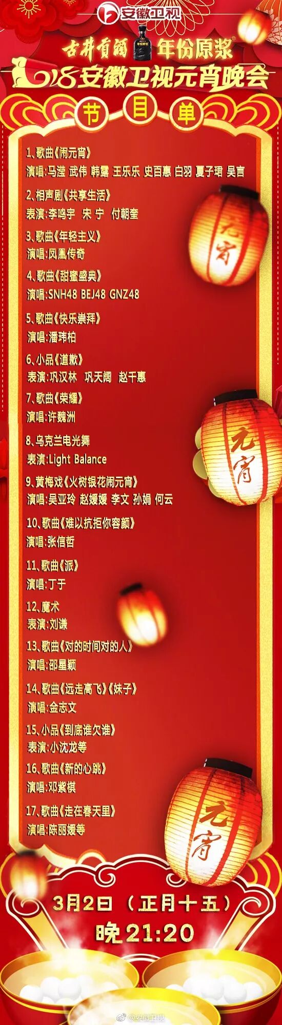 2018央视元宵晚会节目单先睹为快↓↓↓