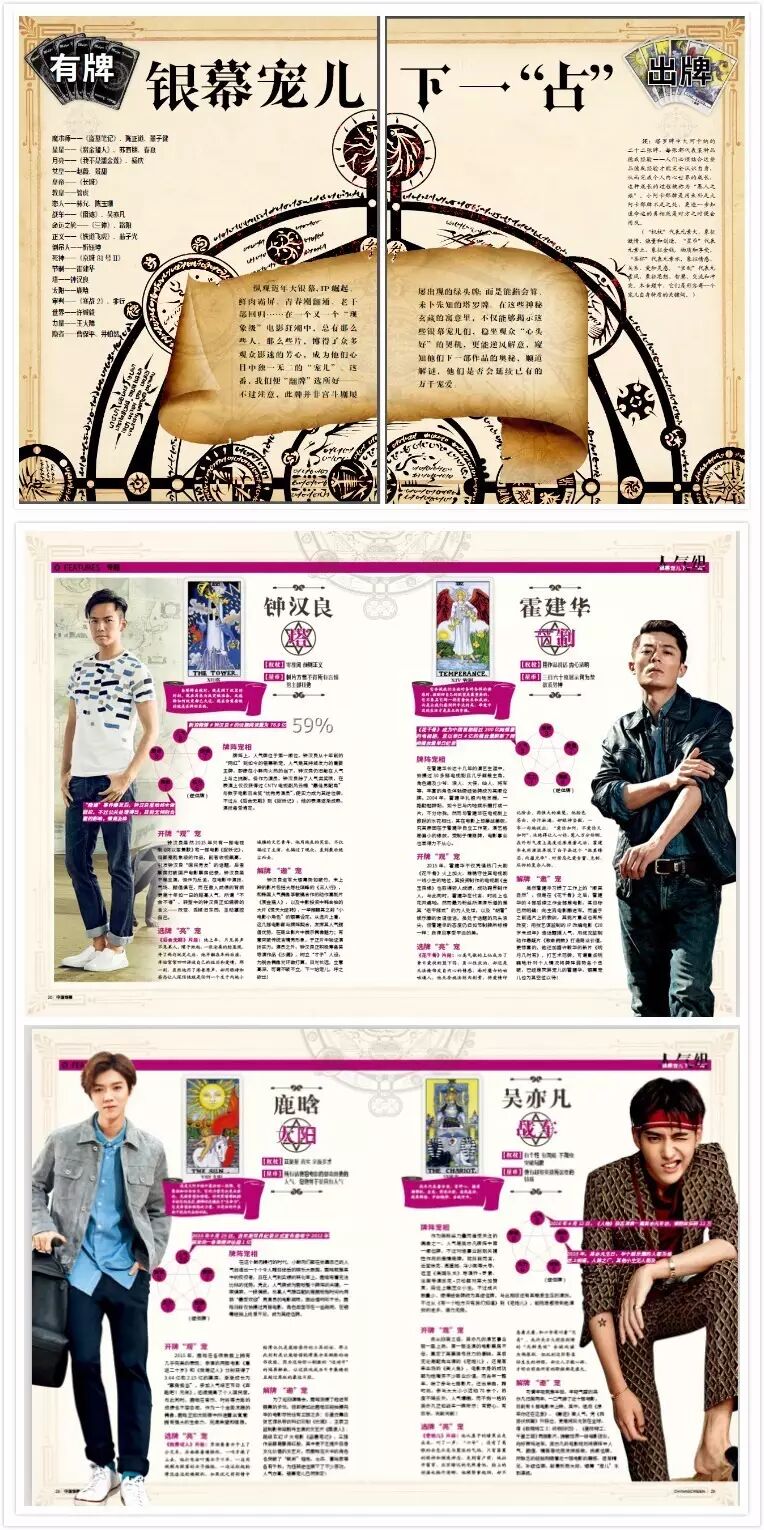 在专题中《有牌出牌——银幕宠儿下一“占”》,我们有鹿晗、吴亦凡、钟汉良、霍建华、井柏然、王大陆、董子健……