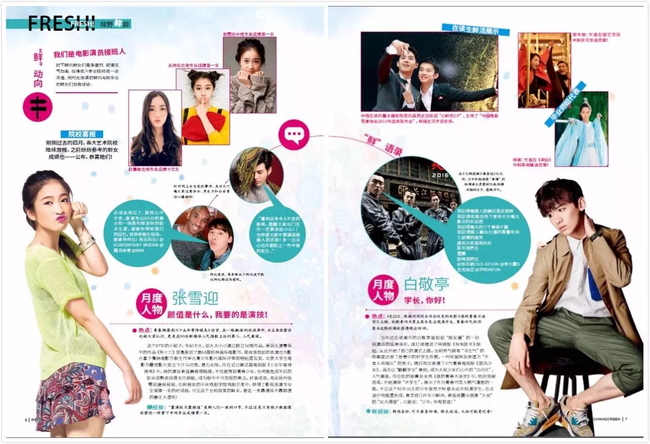 最后的最后,让小鲜肉来结束这月新刊满满的满足感吧!!月度人物是正当红的张雪迎和白敬亭!