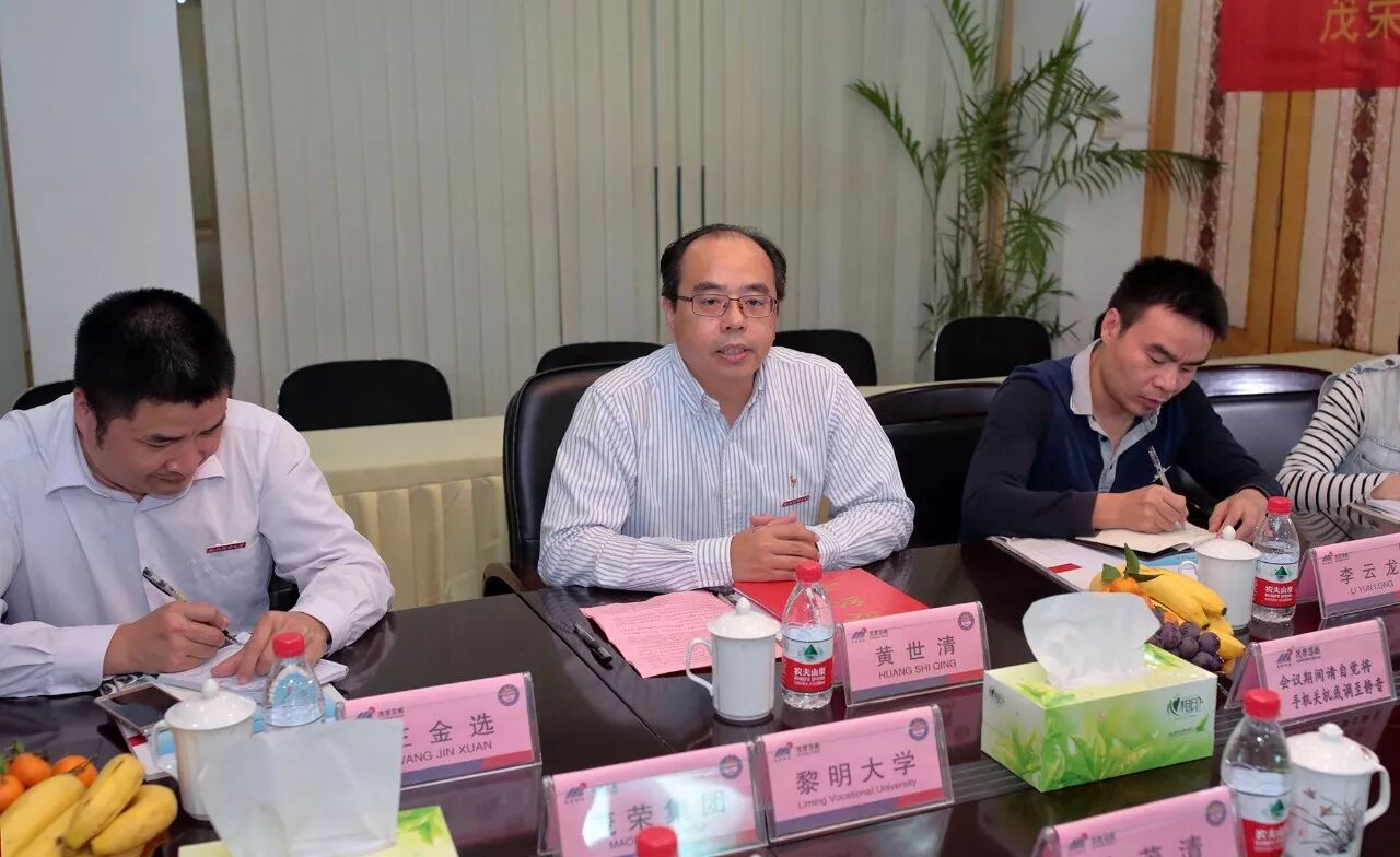 黎明职业大学校长黄世清对余茂清董事长的讲话表示肯定,并代表全校师生对茂荣集团表示衷心的感谢,表示:学校将继续加强与企业的合作,为学生的实习和就业创造条件,为企业的发展提供服务,努力达到学校与企业“合作共赢,和谐发展”这一目标,实现学校、企业和学生“三赢”。