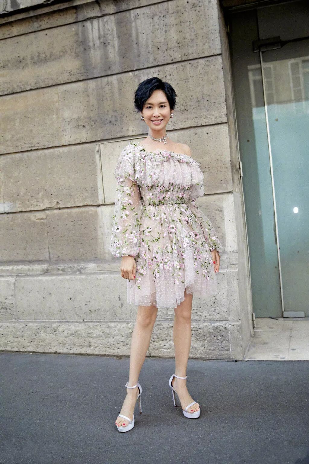 连衣裙款式和材质众多,不一样的裙装会给人传递不一样的美感。比起秋冬连衣裙的厚重,夏日的连衣裙更为梦幻和浪漫,给人以遐想。朱茵的这身漏肩长袖连衣裙呈印花设计,绢纱的材质手感细腻,穿上很是温柔,再加上朱茵本身的气质偏向于甜美,绽放的笑容与这身裙子很好地融合,穿出了加倍的美感。