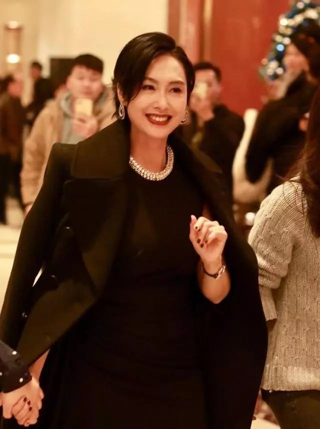 大衣有很多搭配方法,修身一些的话可以搭针织衫,休闲一些可以搭衬衫、潮流一些可以用卫衣来搭,当然也少不了大衣可连衣裙的经典搭配。朱茵这身用了“All Black”的搭配方法,将黑色大衣和同色系的连衣裙进行搭配,不容易出错。黑色一般显沉闷,朱茵在穿衣的时候,只将大衣搭在肩上,打破黑色沉闷感的同时,穿出了不一样的气场。