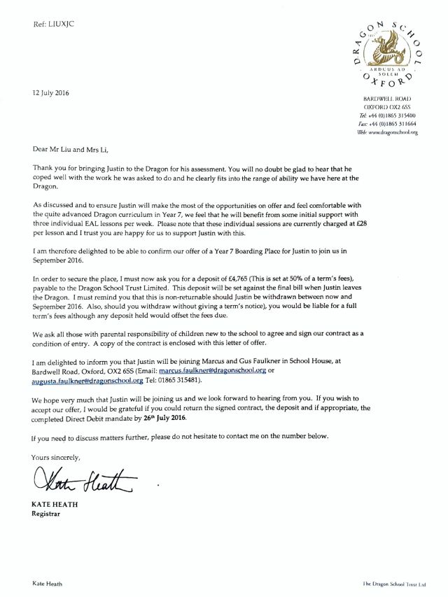 所处理的学生案例如Justin,就有针对学生Justin的相关综合情况,进行水平测试,后续针对所申请学校进行相关的培训及申请留学准备,Justin按照我们的合理规划进行有条不紊的手续办理,包括前期的面试准备,顺利地通过了Dragon School的面试,并成功获取了牛津龙小学的录取通知书。
