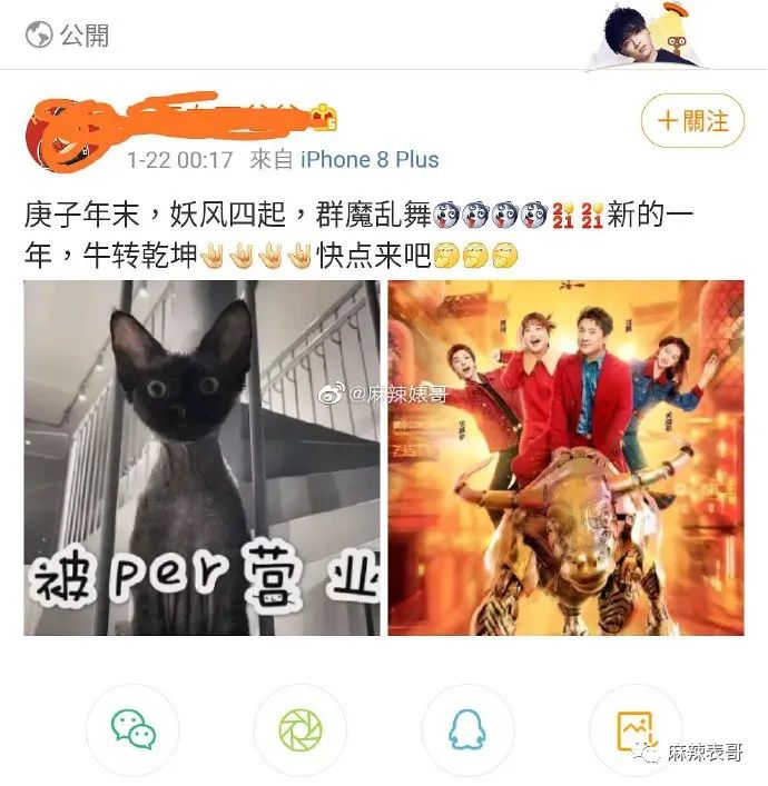 就在爆料的内容还在发酵的时候,华晨宇的堂哥出面了,说说“庚子年末,妖风四起,群魔乱舞”,并配了张“被per营业”的表情包。
