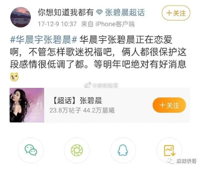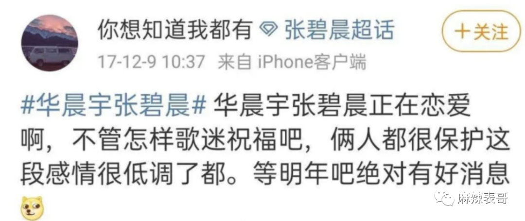 17年12月9日,有网友在张碧晨超话里发帖,说华晨宇和张碧晨正在谈恋爱。