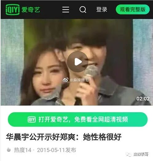 郑爽之前和李钟硕合作过《翡翠恋人》,华晨宇2015年的时候公开夸赞过郑爽脾气好。