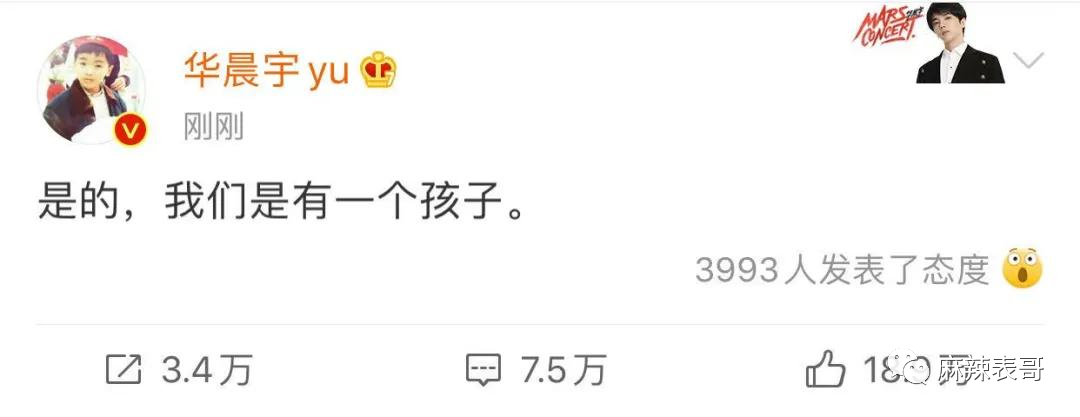 我是早上22日9点发的这条博文,到了下午5点45分,华晨宇主动出来扛锅,说“是的,我们有一个孩子”。