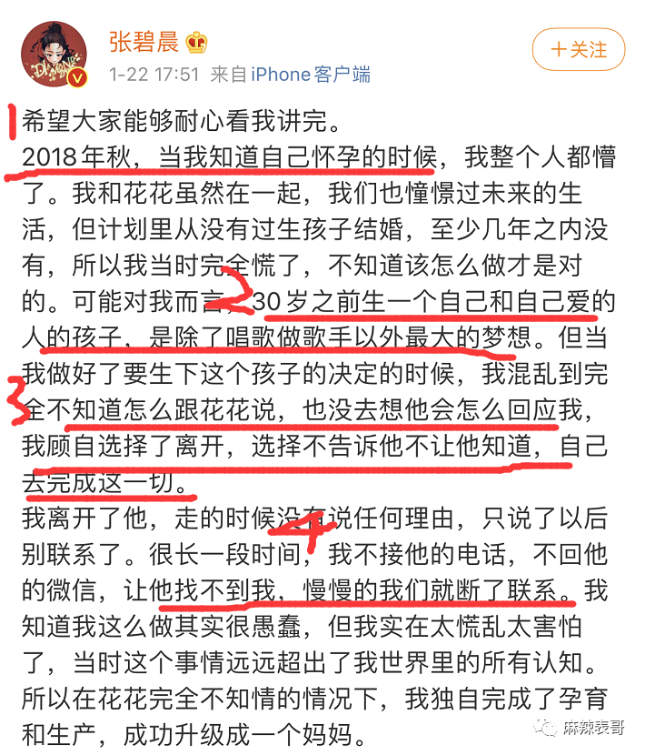 我们话说到现在的时间线。张碧晨的回应长文里把华晨宇夸成了一个好爸爸,说两个人在磨合,在给孩子一个完整的家庭。