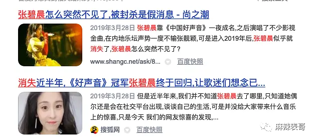 另外一方面,张碧晨的的确确是消失过一段时间的。