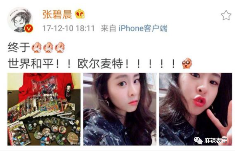 次日,张碧晨就在微博里发,说“欧尔麦特”。