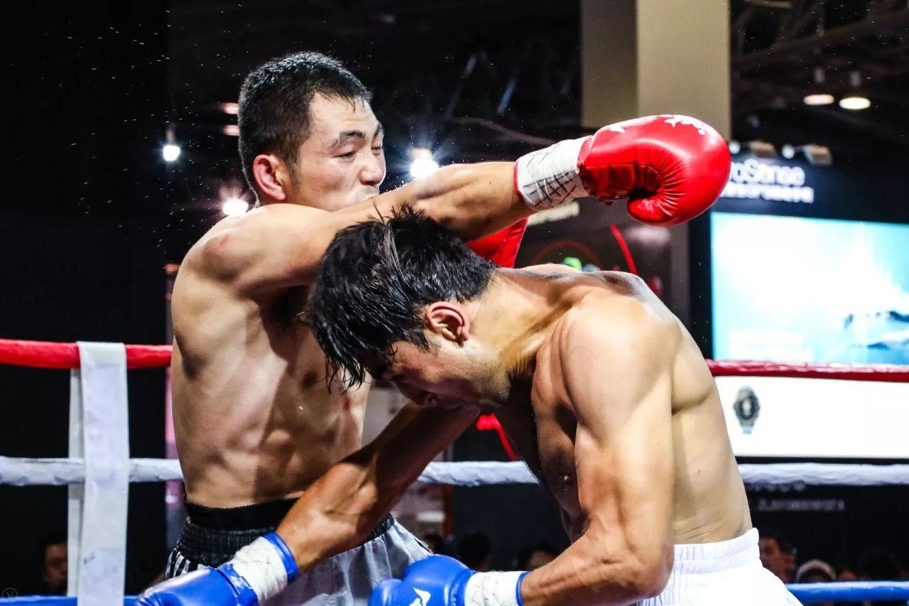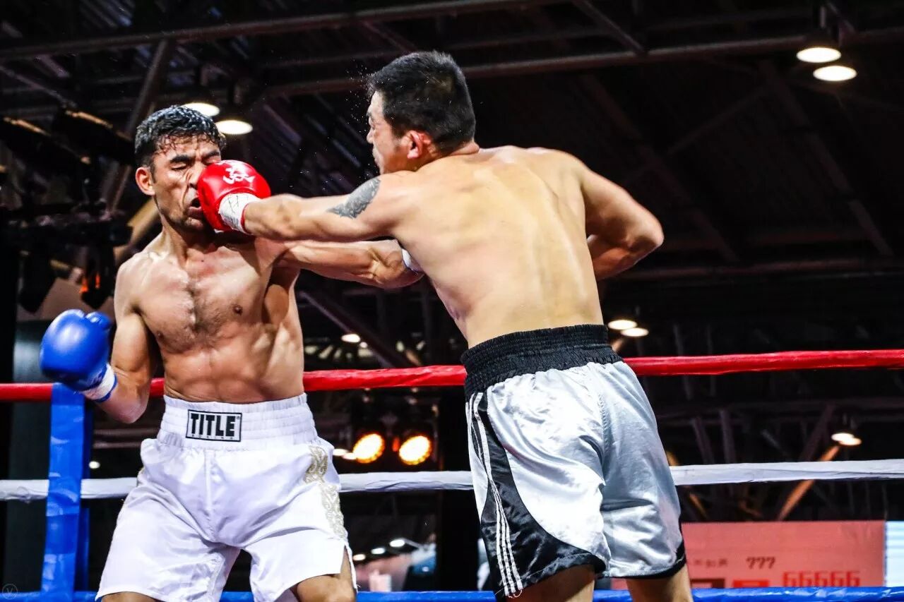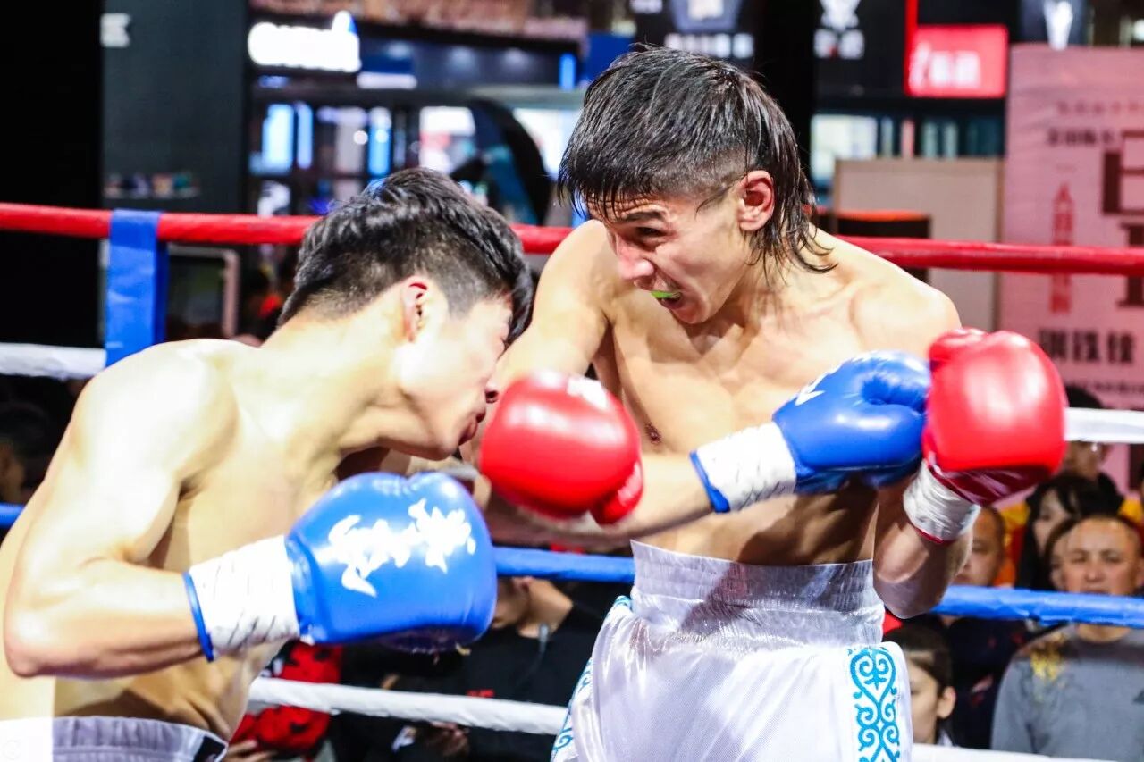 << 滑动查看努尔兰别克-阿依丁(蓝色拳套)拳焱照片 >>