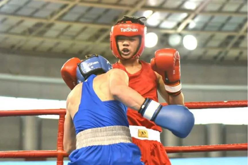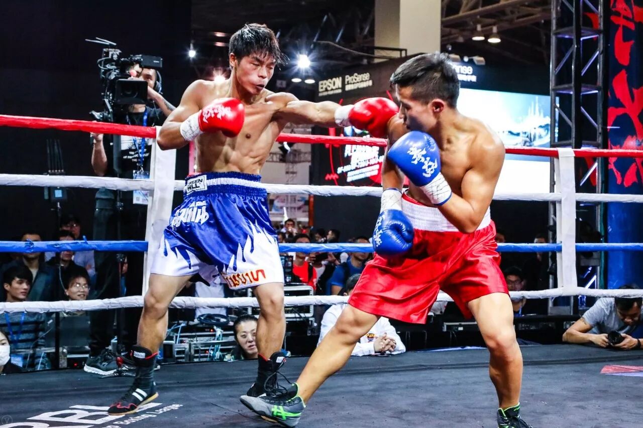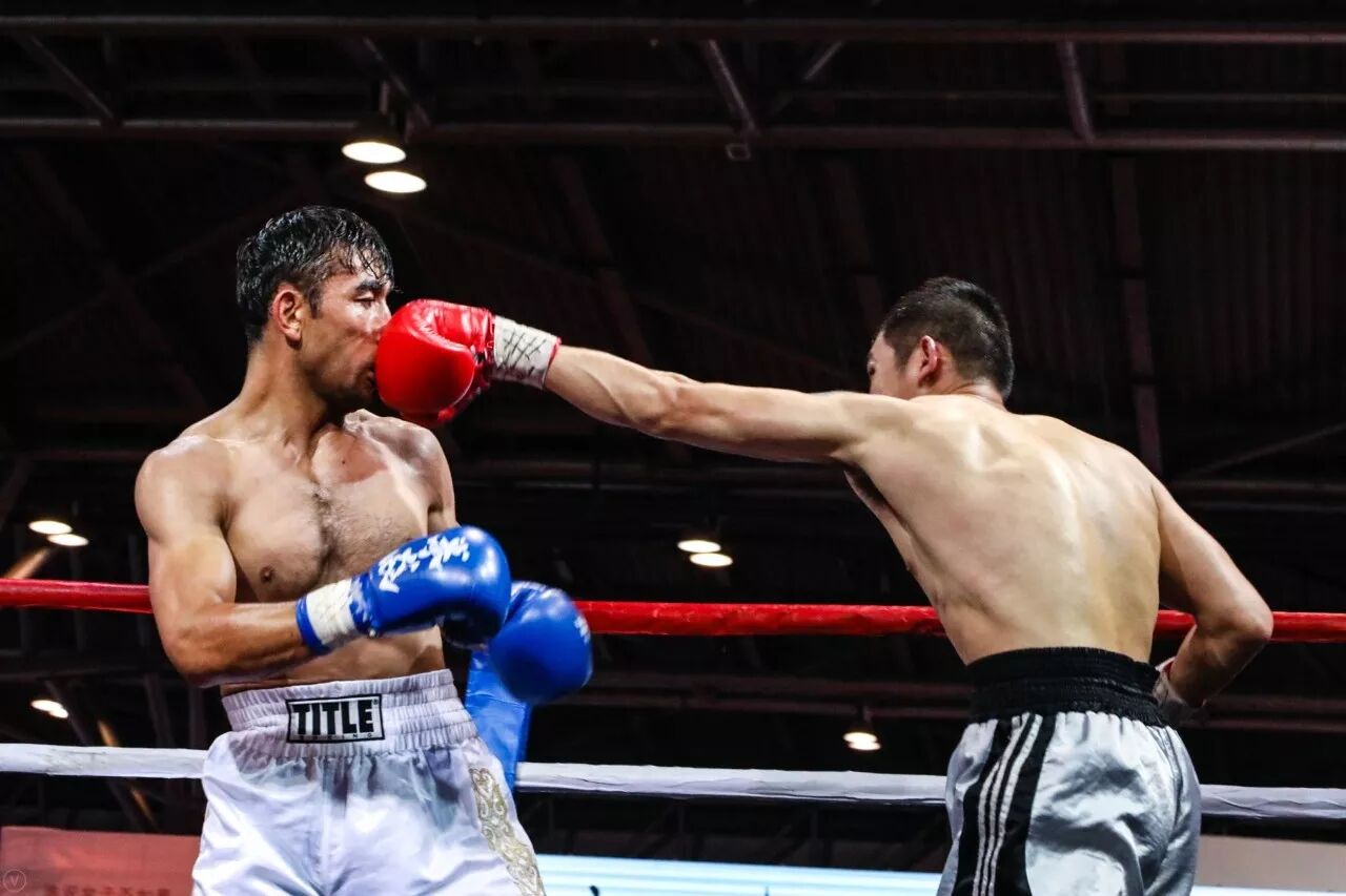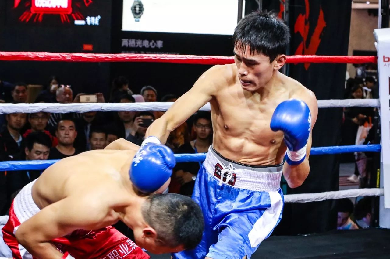 << 滑动查看努尔兰别克-阿依丁(蓝色拳套)拳焱照片 >>