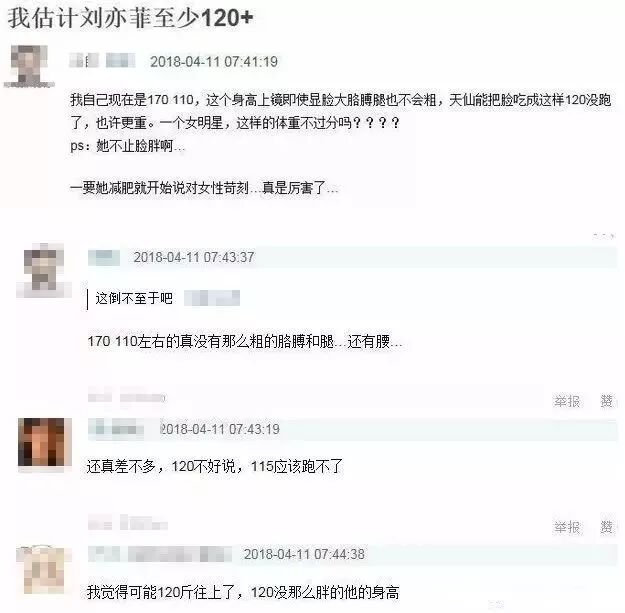 甚至有网友发帖猜测刘亦菲的体重,按照她170cm的身高,体重至少120+......