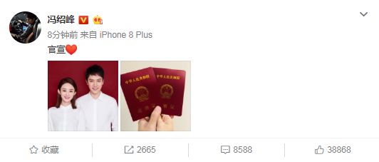 致各位关心赵丽颖女士和冯绍峰先生的朋友们: