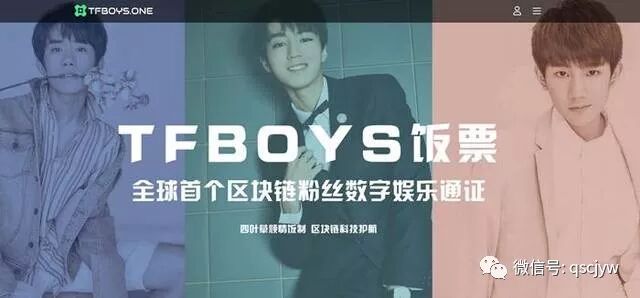 登录“tfboys.one”,首页是明晃晃的TFBoys三人照片,根据网页中给出的介绍,TFBOYS饭票(即TFBC)是由区块链粉丝后援团体自发创立的全球首个基于区块链技术的偶像饭圈数字通证(Token),同时未来在此基础上打造全球首个粉丝区块链文化圈。TFBC基于以太坊技术,确保每一张TFBC在互联网中永久存在,粉丝持有的记录也将被永久记载。