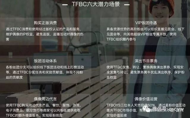 而对于TFBC的主要用途,网页给出了六大潜力场景:购买正版消费、饭团活动体系、偶像周边代言、VIP饭团待遇、演出节目票务、偶像价值运营。