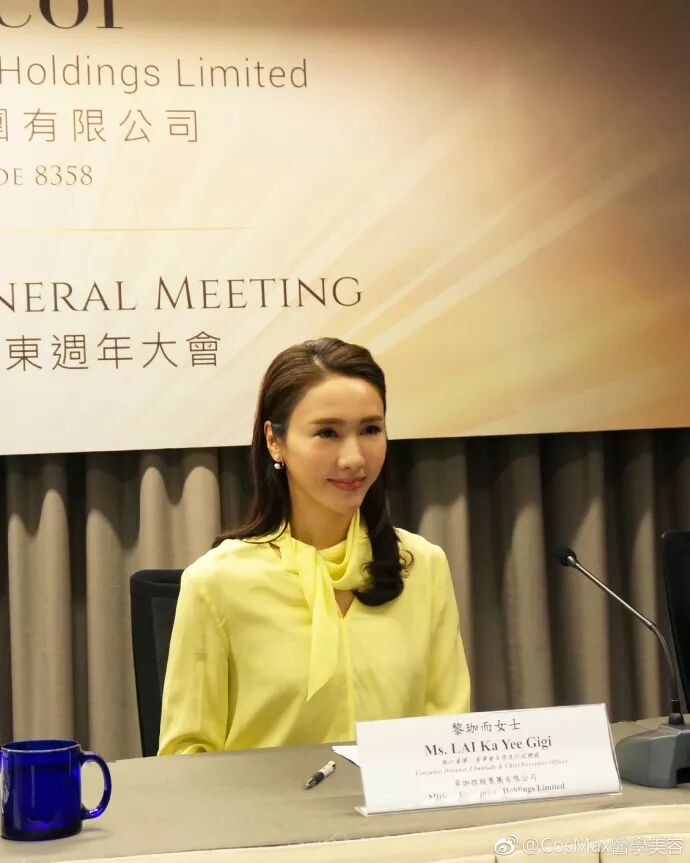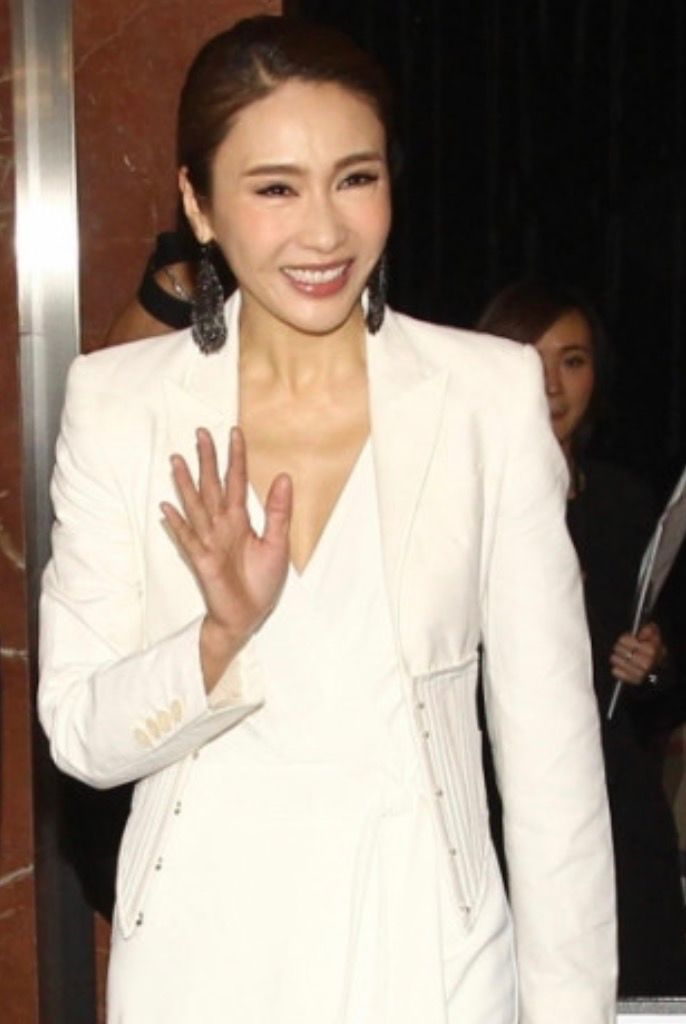 之后回到香港出席活动,换了一身行头变成商界女强人,气质虽然被提升了上来,但面部表情还是略显僵硬。