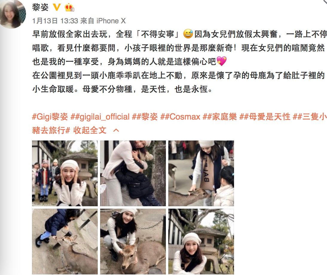 从今年开始,黎姿发微博的频率密集了,笑容也越来越多了。