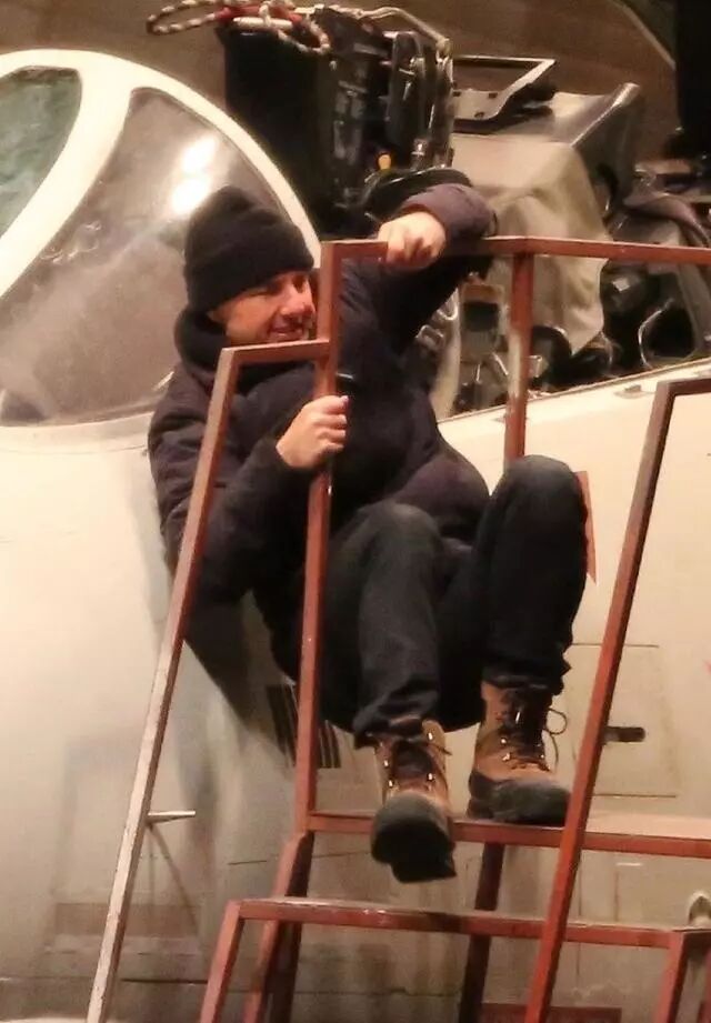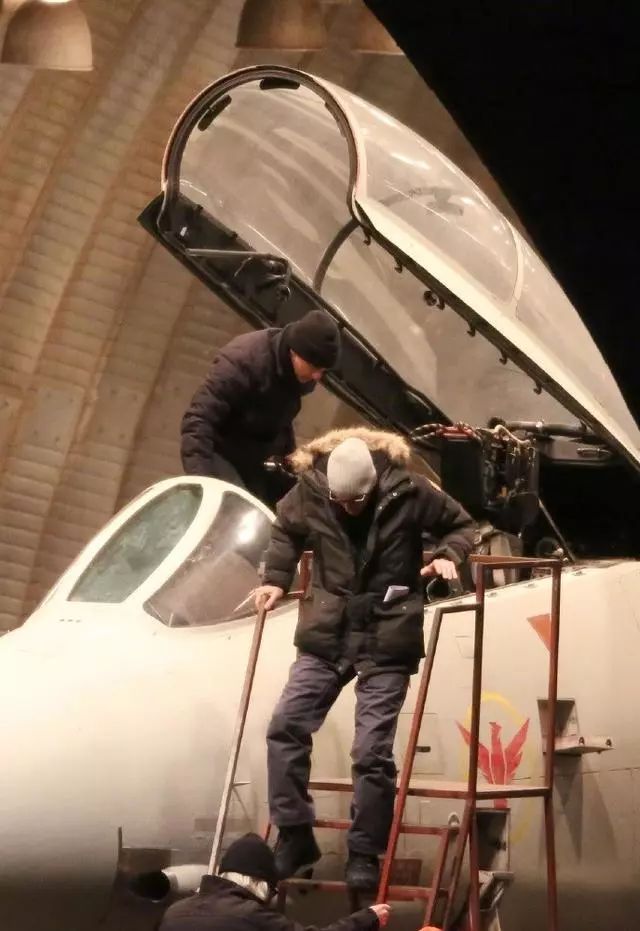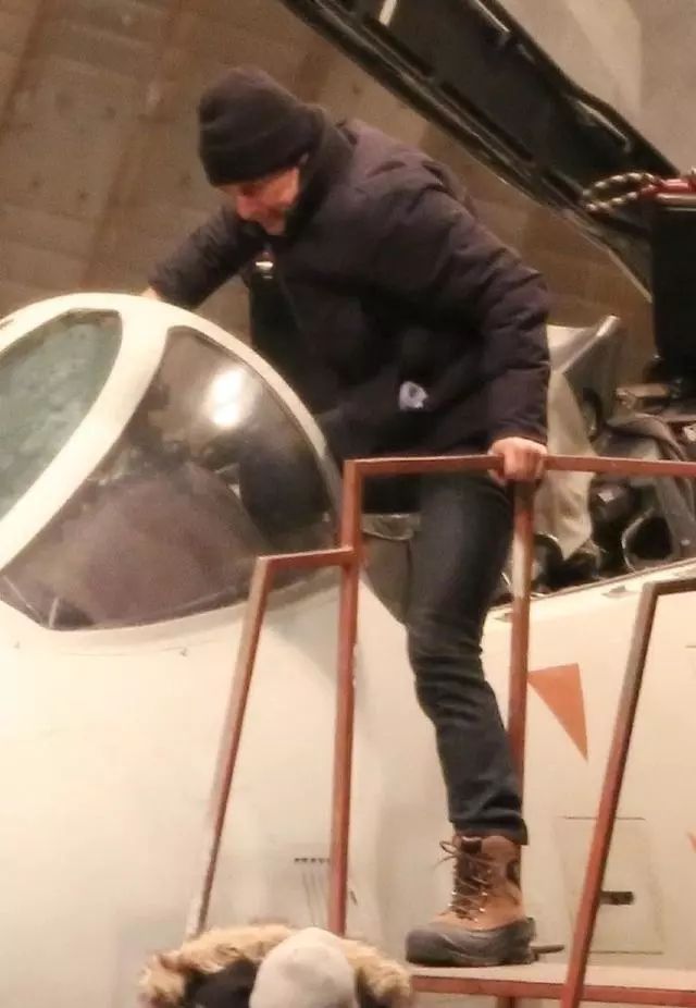 片场照中,阿汤哥借着梯子爬上了一架战斗机,进入驾驶室提前熟悉各种操作,为了更好的完成电影拍摄十分用心,真的是非常敬业。