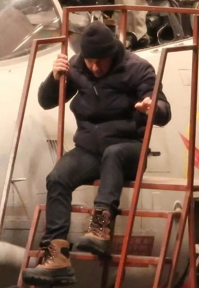 不过阿汤哥下飞机的动作却有点让人心疼,不知道是不是衣服太厚的原因,往下爬的阿汤哥没有了电影中矫健的身手,挂在梯子上,动作有点迟缓。