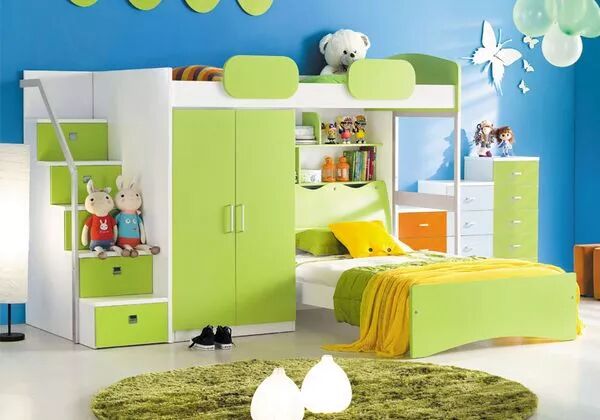 为给孩子营造一个身心完全放松、无拘无束地起居、学习、嬉戏的小天地,应尽可能缩小家具所占空间,在设计时宜侧重它的多功能性。
