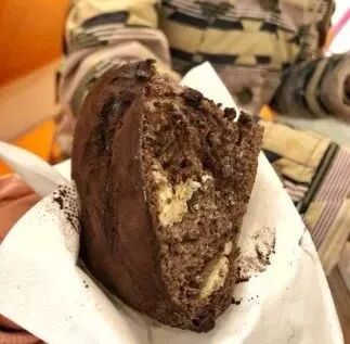 武空的脏脏包真的能让巧克力控们疯狂,一整个脏脏包,就像一块大巧克力。切开后,里面还有丰富的奶油芝士和巧克力豆,吃起来口感丰富,只想一个接一个,体重什么的吃完再说!