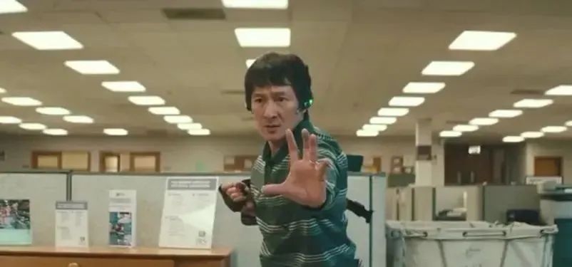 关继威在《瞬息全宇宙》中饰演杨紫琼的丈夫,长得有点像成龙。