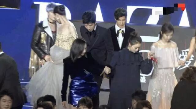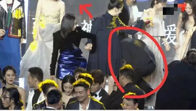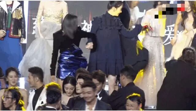 可能是倪妮的裙子有点长,鞋子有点高,井柏然扶着倪妮,生怕倪妮有点闪失,夸张程度堪比照顾孕妇。