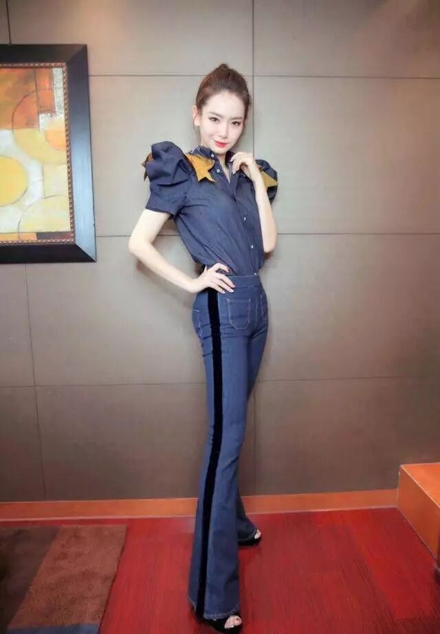 戚薇每天穿的不重样,而且每一款都是大众可以效仿的对象。牛仔套装,高腰裤尽显大长腿,搭配一双凉鞋,清爽又舒适,泡泡袖的设计,又增添了几分可爱。
