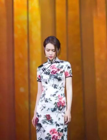 旗袍是中国传统的连衣裙,只有身材足够好的人才可以驾驭,戚薇敢于尝试,效果也是值得点赞的,水磨花的图案,中国风韵十足。