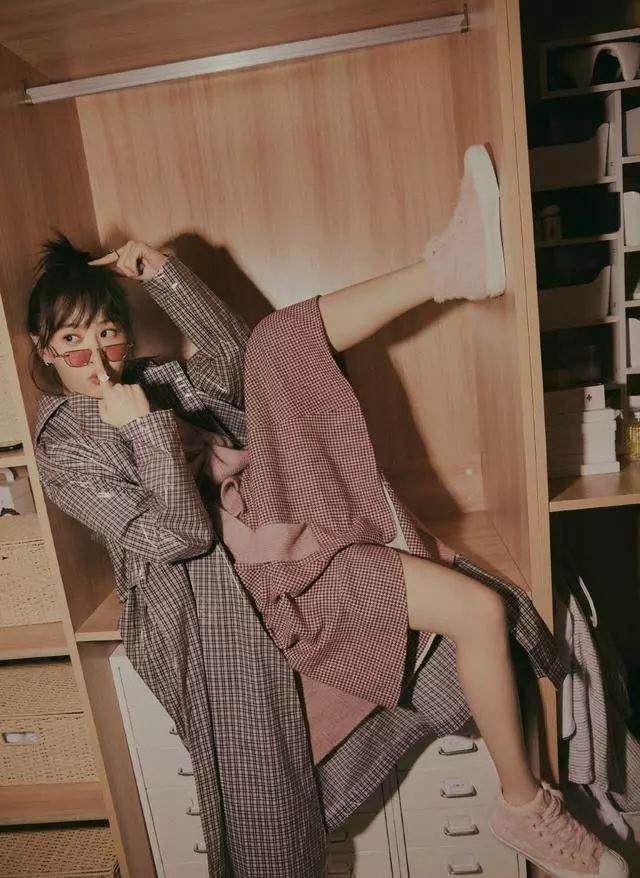 格纹长裙搭配着格纹大衣,这一个造型看上去显得十分的个性,时尚,而且结合着李金铭的表情来看,也是流露出来了一丝小小的俏皮感觉的,简直不要太可爱了。